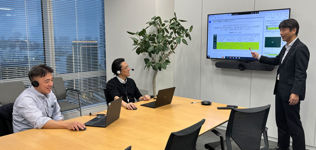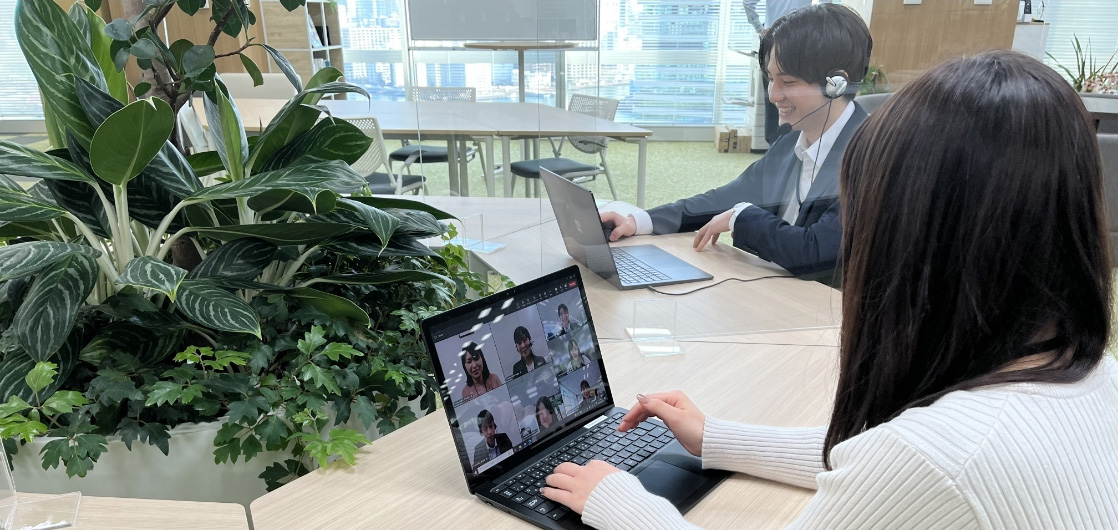 近年一般的となった、リモートワークや社内のWeb会議を柔軟に行える体制を整備しています。Microsoft Teamsを活用した社員同士のコミュニケーションが積極的に行われ、対面でのコミュニケーションも大切にしながら、日々業務に取り組んでいます。