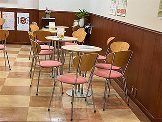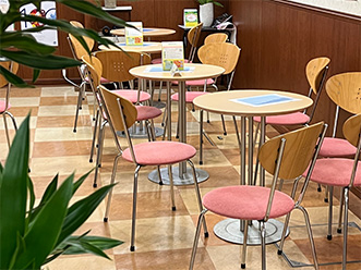 社内の喫茶スペースで昼食を取ります。
