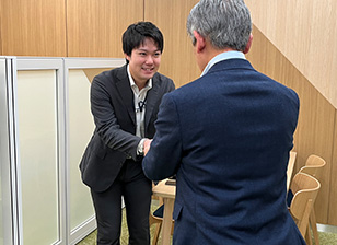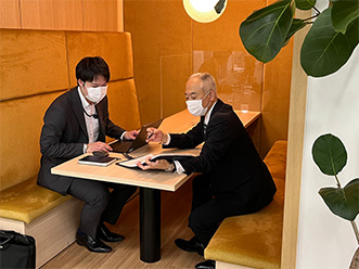 担当するお客さまに往訪します。既にあるご契約の維持以外にも、新たなリスクカバーのご提案なども行います。後輩育成の一環で、後輩社員に同行してもらうこともあります。