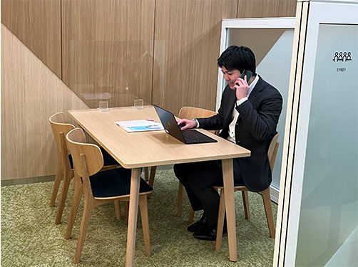 - 帰社後は、問合せあったお客さまや関係部署などに連絡し、案件の進捗を確認し、翌日以降の活動の準備を行います。お客さまへの往訪が遠方の場合などは、直帰することもあります。